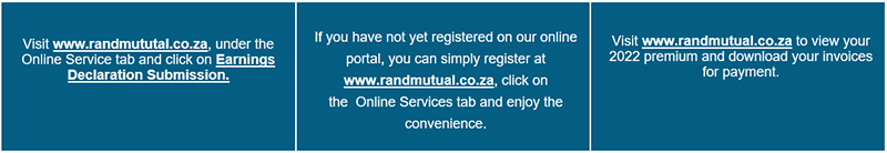 We would like to thank you in advance for your participation in meeting the deadlines as we work together to ensure accurate and fair assessments. For any enquiries and support, contact us on 0860 222 132 or email clientcare@randmutual.co.za